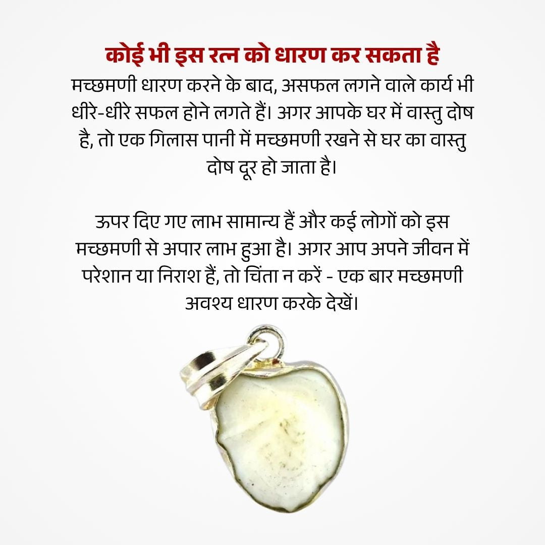- For Vastu dosha: Place Machh Mani in a glass of water at home to reduce negative vibrations.